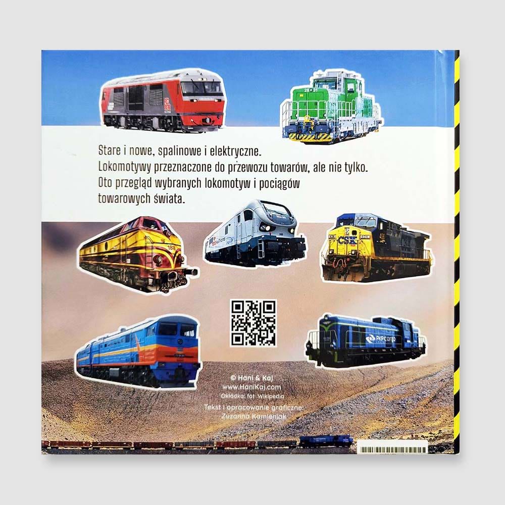 Prawdziwa gratka zarówno dla małych, jak i nieco większych entuzjastów kolei! “Lokomotywy i pociągi towarowe świata” to książka obrazkowa, w której na każdej z 10 kart przedstawiony jest inny pociąg. Wysokiej jakości kolorowe zdjęcia wzbogacone są o ciekawostki/komentarze Kaja i Haniego, co czyni z tej książki ciekawą lekturę i wstęp do dyskusji z rodzicem na temat pociągów.